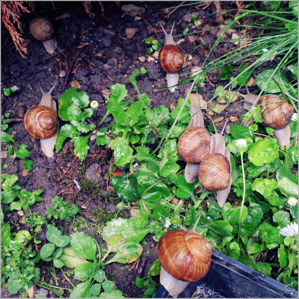 mais aussi des hôtes du jardin qui sortent du confinement après une période de temps trop sec pour mettre le bout d’une corne dehors ;-)...