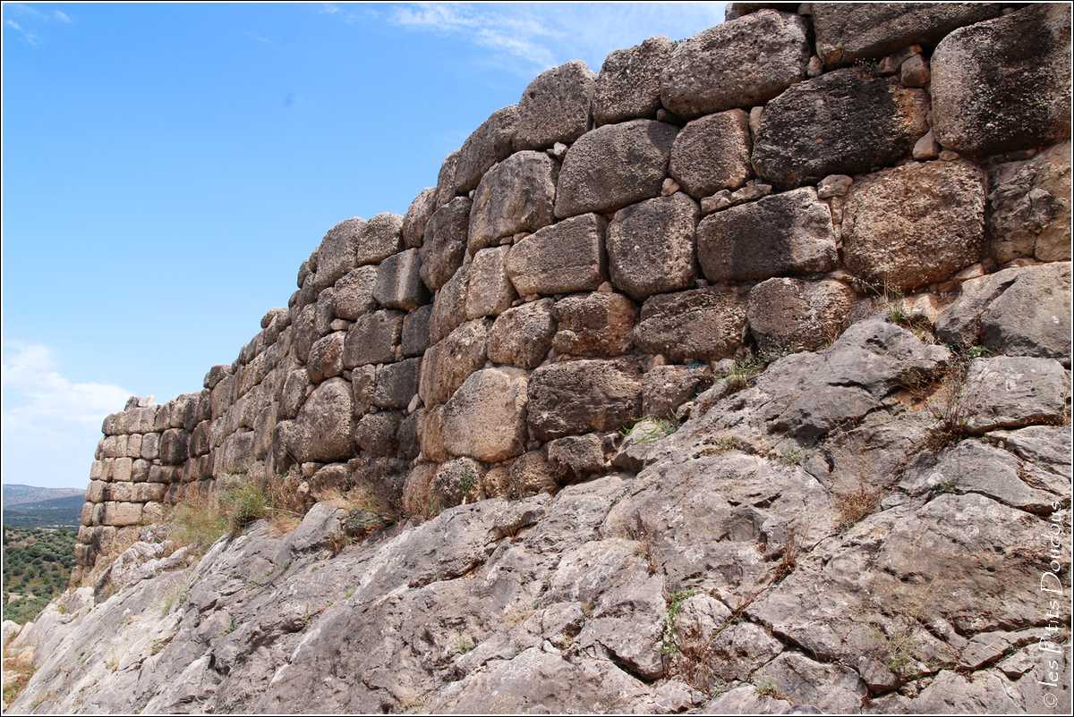 [1] Selon la mythologie, la cité aurait été fondée par Persée aidé des Cyclopes – de gigantesques bâtisseurs – il aurait érigé les puissants remparts de la citadelle. Cette origine légendaire explique le nom de « murs cyclopéens » donné aux murailles colossales dont l’assemblage semblait dépasser les capacités humaines.
