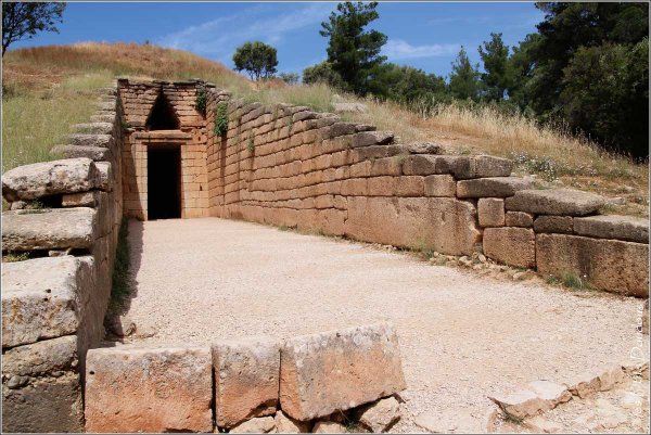Parmis ces tombes royales circulaires, en forme de ruches géantes [2], contenant des trésors en or d’une valeur inestimable : masques, bijoux, armes ornées,... fut découvert le ”Trésor des Atrides” avec le célèbre masque mortuaire en or dit "masque d’Agamemnon".