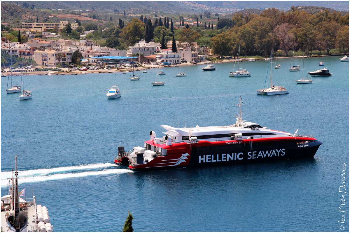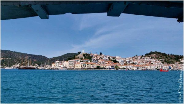 A partir de Galatas, embarquement à bord d’un petit caïquei pour l’île de Poros [1].