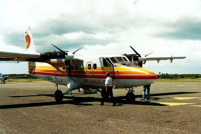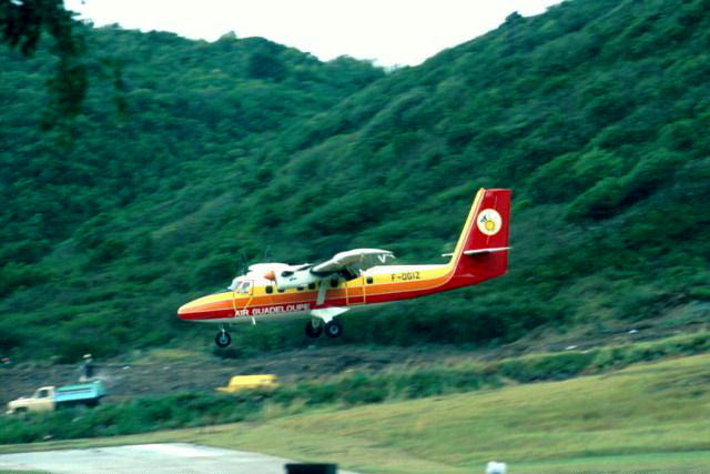 Vers Marie Galante, les liaisons aériennes étaient assurées par un vénérable DC3 d’Air Guadeloupe qui avait sans doute déjà beaucoup volé aux quatre coins du monde. Un de ses semblables, accidenté, triste témoin de la relativité des transports aériens, rouillait à proximité des hangars de l’aéroport du Raizet à Pointe-à-Pitre…