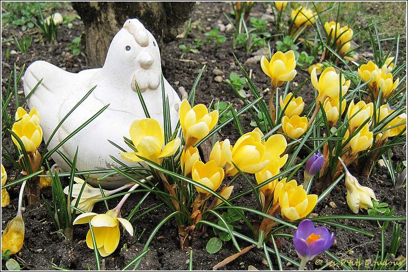 Les crocus sont un peu en retard... Ils avaient bien commencé à fleurir début février, mais les fortes gelées qui ont suivi leur ont ôté toute velléité de poursuivre plus avant leur effort...