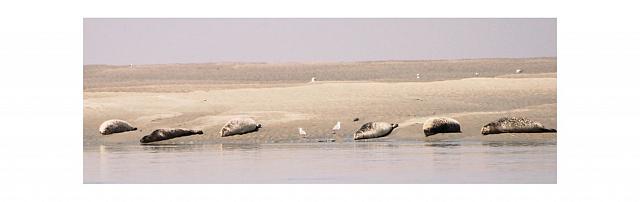 En regardant, ces mammifères marins, comme échoués sur le sable, on se dit qu’ils ont bien raison de profiter d’une nature reposante, encore protégée du béton, ou le ciel, le sable et l’eau changent sans cesse de physionomie au gré des marées et des nuages qui passent [1]...