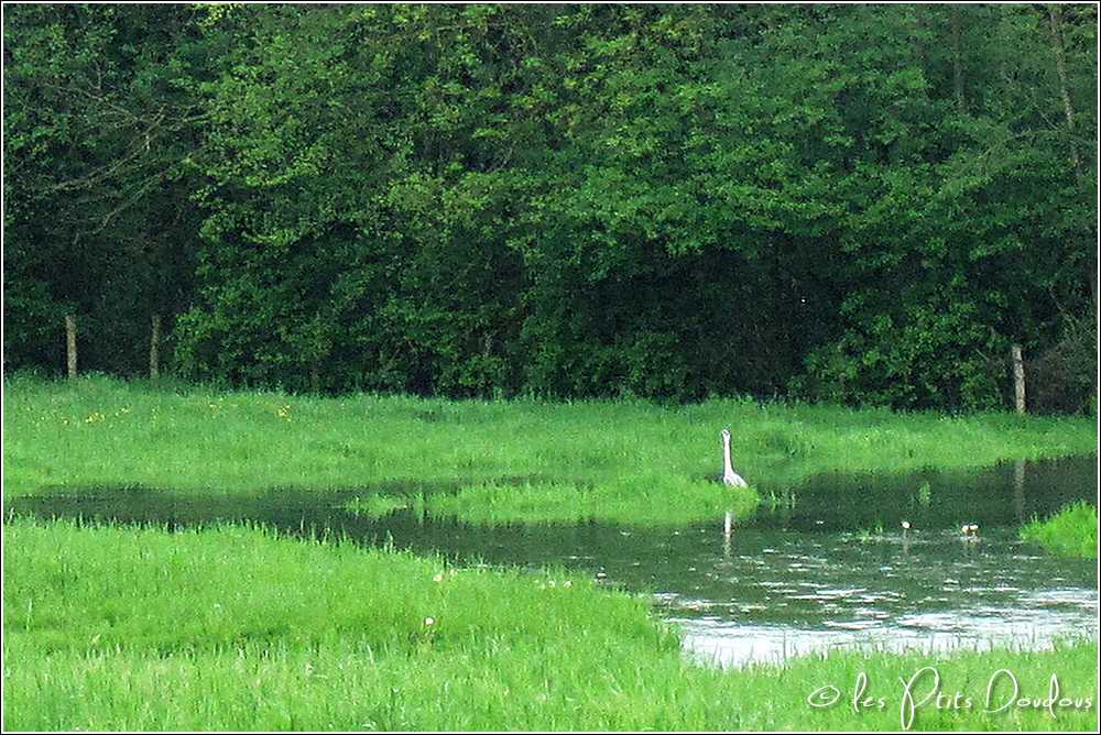 Ceux qui en profitent bien, les canards et hérons qui ne semblent pas trop dérangés par la hauteur des eaux...