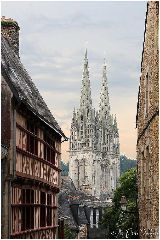Ville épiscopale avec ses remparts qui entourent la vieille ville, sa cathédrale St Corentin et le palais des évêques, ses maisons à pans de bois et ses hôtels particuliers en pierre...