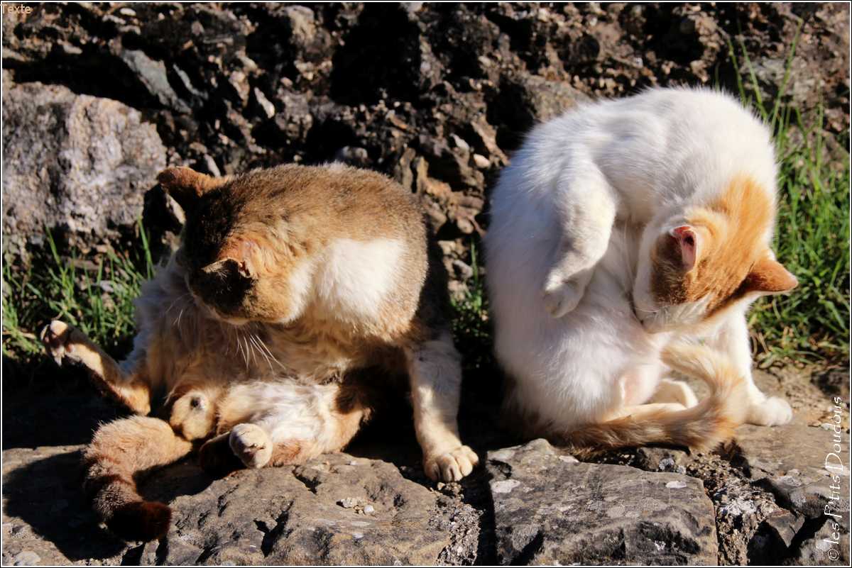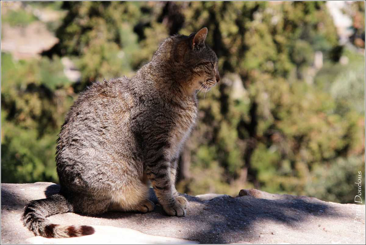 Les chats sont partout présents dans toute la Grèce, dans les villes, les campagnes, les sites archéologiques, à l’entrée des musées,... Libres comme l’air, ils vont, flânant entre les tables des tavernes à la quête d’une âme charitable qui se laissera attendrir et leur donnera un petit bout de viande ou de poisson.