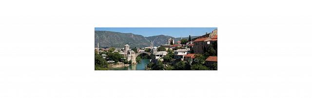 Mostar, nichée dans la profonde vallée de Neretva, est riche de ses vieilles maisons turques et son célèbre vieux pont Stari Most (XVIe siècle). Ce dernier a été détruit, comme une grande partie de la ville historique, lors de la guerre des années 1990.