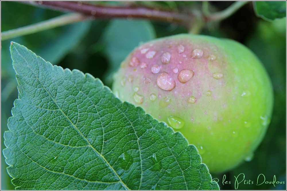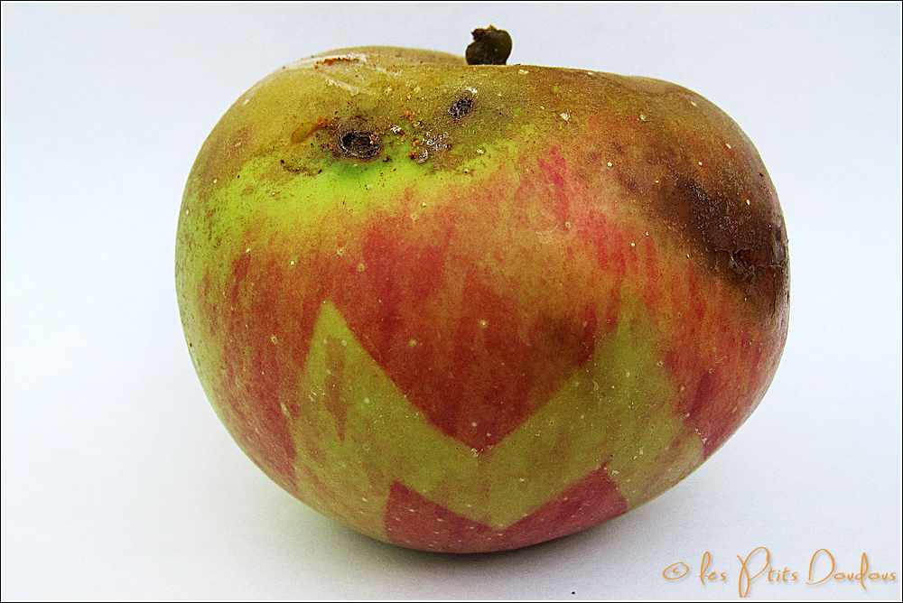 MathisPaulles P’tits DoudousAu jardinEtéBelle de Boskoop, Reine des Reinettes, Transparente de Croncels, cette année les pommes du jardin des P’tits Doudous n’attendent pas d’être à maturité pour tomber de leur pommier... La faute aux vers qui y creusent malicieusement leurs galeries ou, à une fin d’été, un peu trop sèche ?