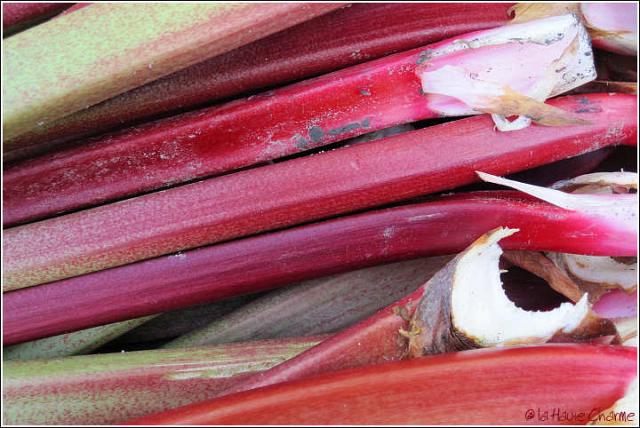 Ce matin première récolte de belles côtes bien larges de rhubarbe.