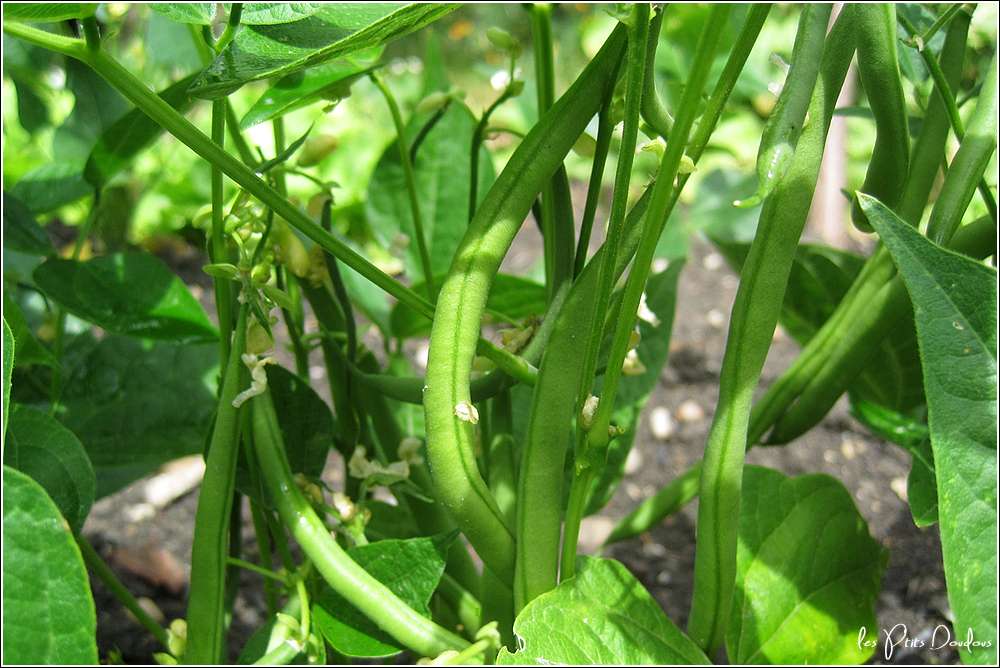 Malgré le manque d’eau les fruits et légumes poussent et surprise ... première récolte de haricots de l’année !