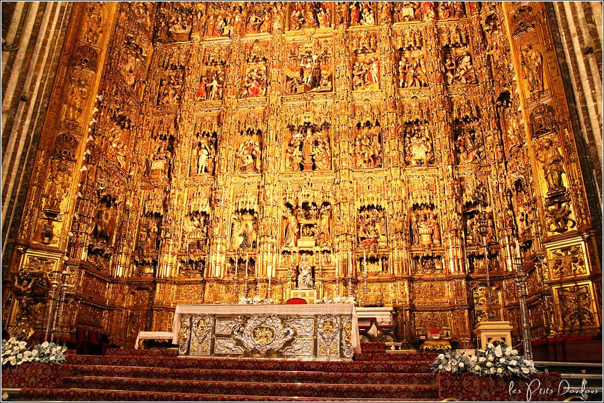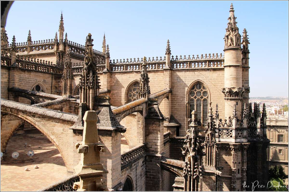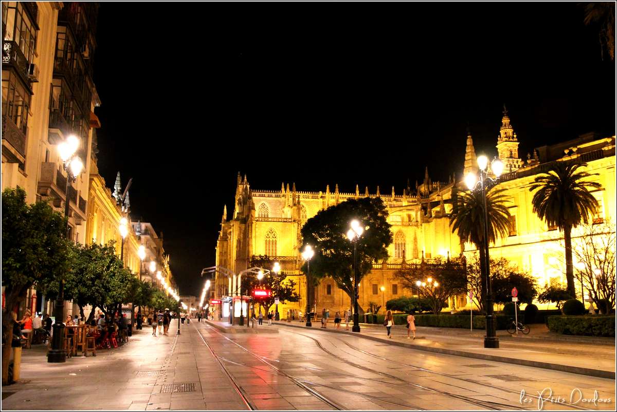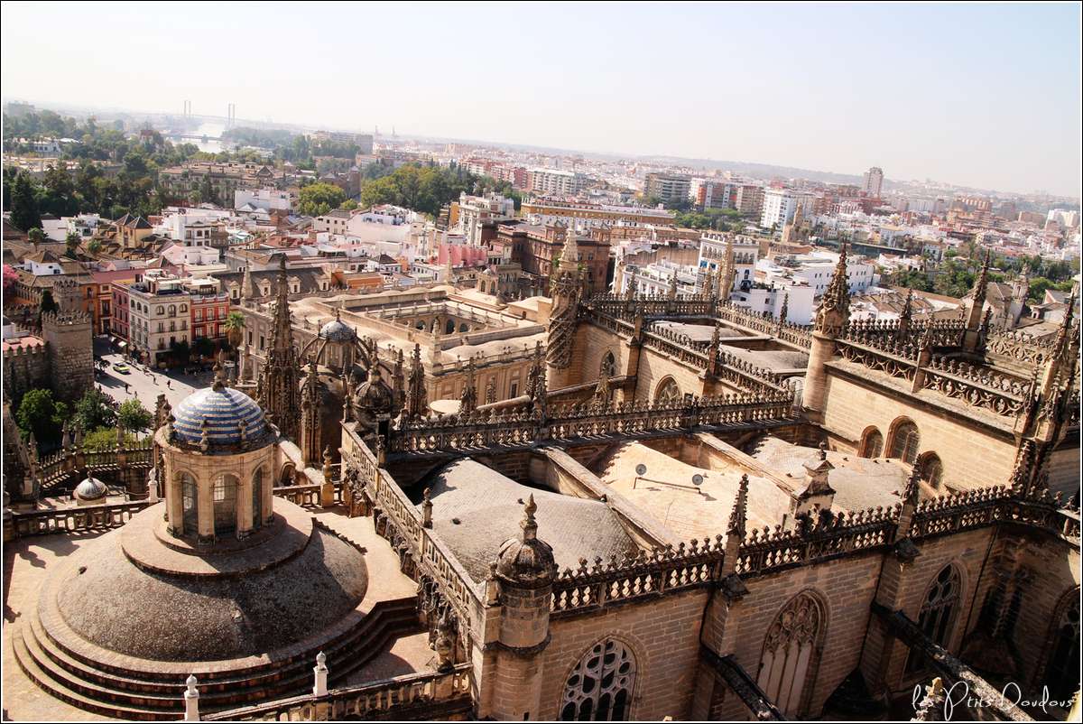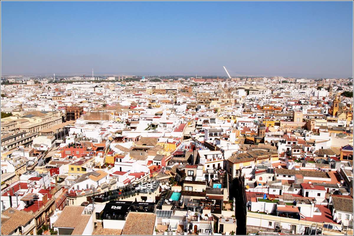 Quatrième ville d’Espagne, capitale de l’Andalousie, située sur les bords du Guadalquivir, Séville possède de nombreux joyaux architecturaux. Sa cathédrale, une des plus grande au monde, construite en lieu et place d’une mosquée, impressionne par sa beauté, ses voûtes, ses orgues grandioses, son retable recouvert d’or, son tombeau de Christophe Colomb,... et la Giralda.