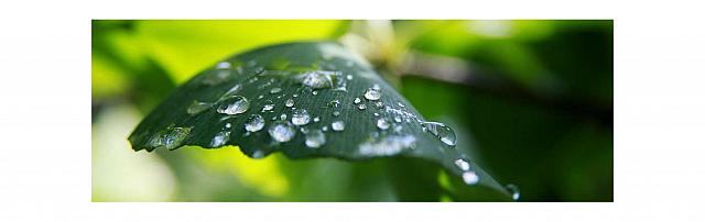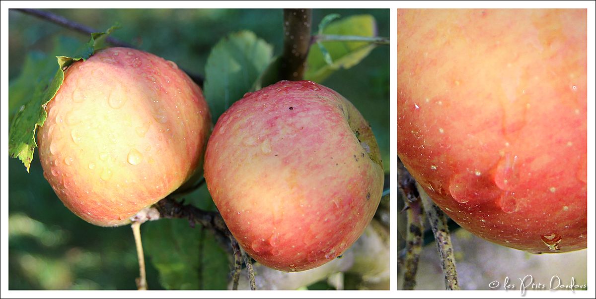 Avec les dernières gouttes de pluie et la rosée du matin, feuilles, fleurs et fruits révèlent leurs couleurs... et parfois une surprise : une chenille (passer votre souris sur la feuille pour découvrir l’animal... sans doute la chenille du sphinx du troène).