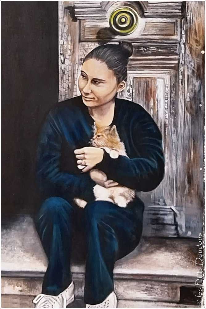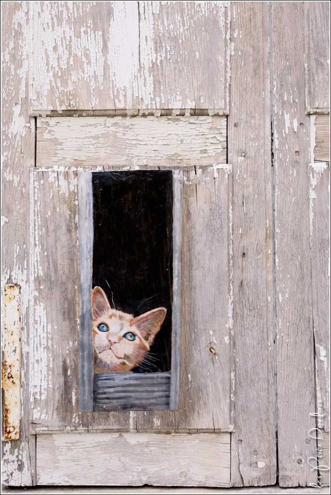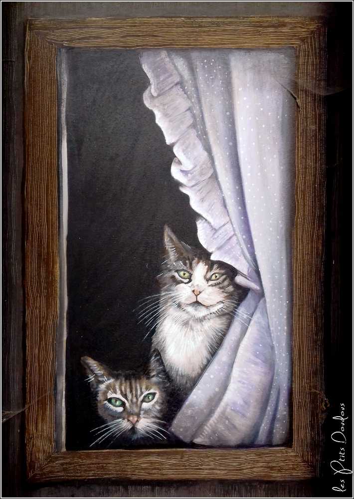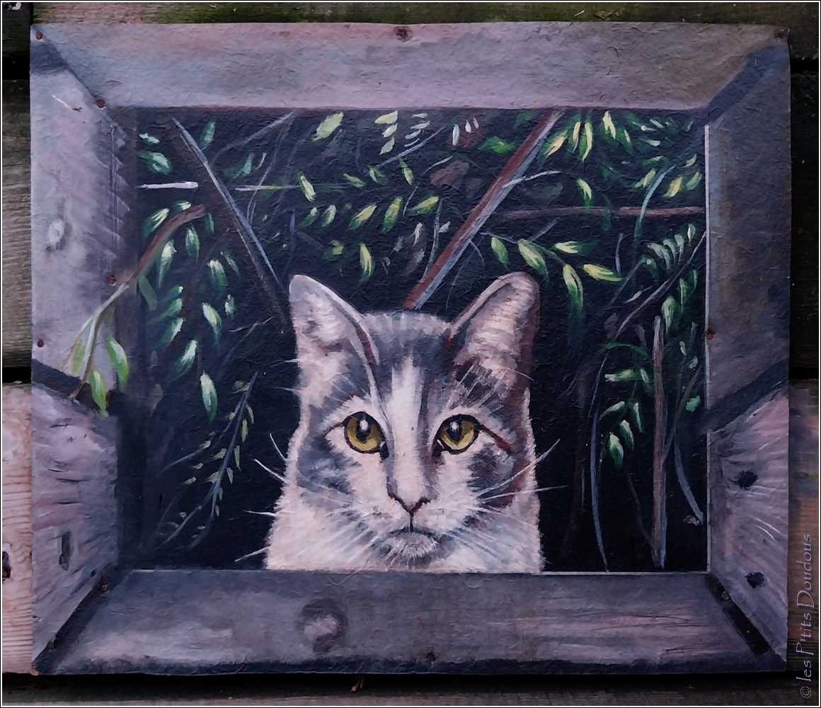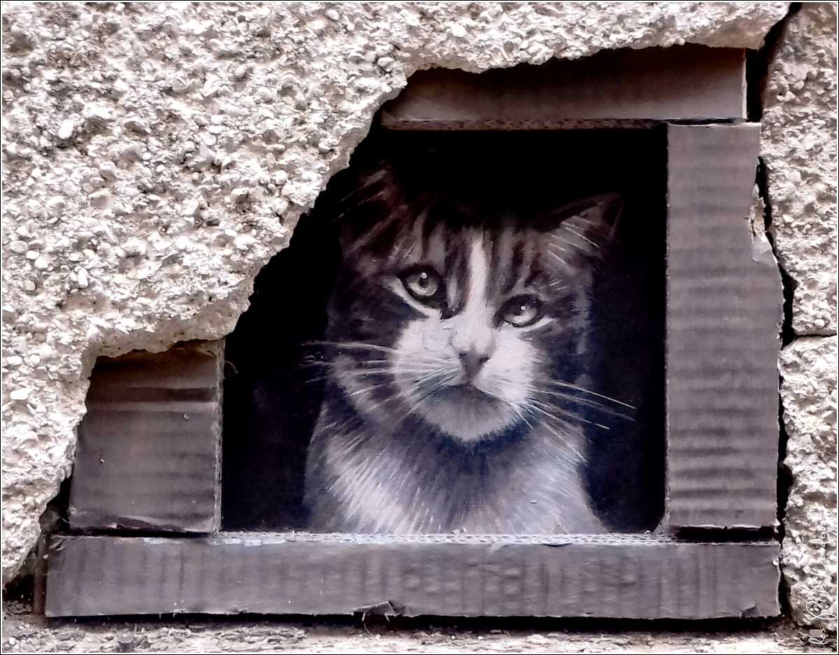 Parmi tous ces chats vous y verrez le portrait de leur auteur, ainsi que, ajout récent, un singe malicieux qui présente cette galerie en plein air.