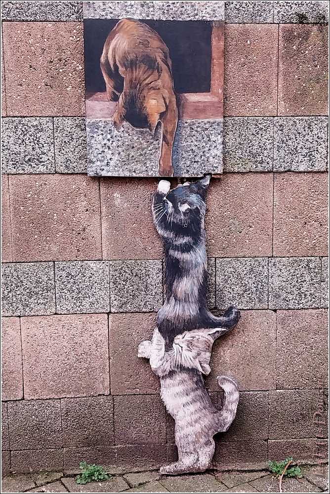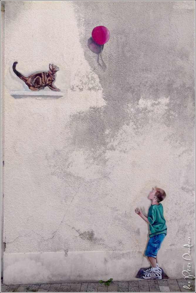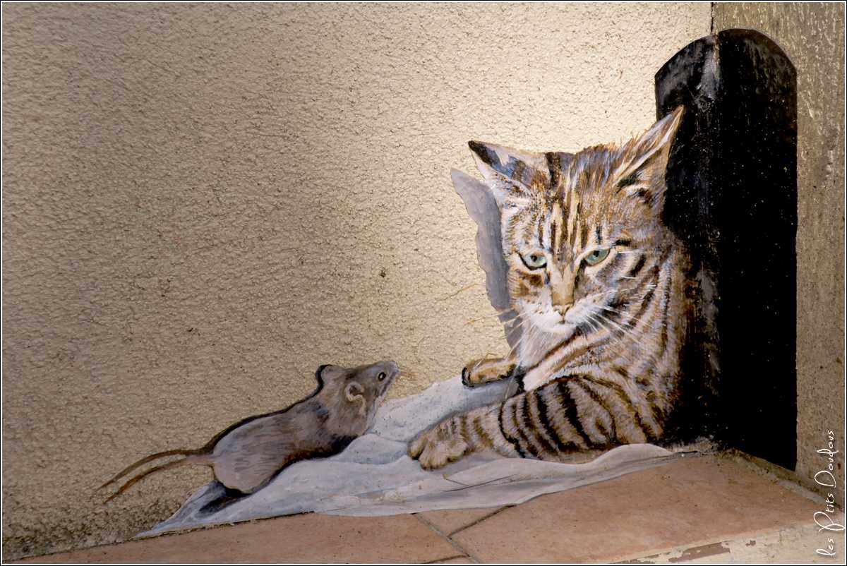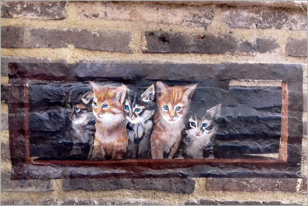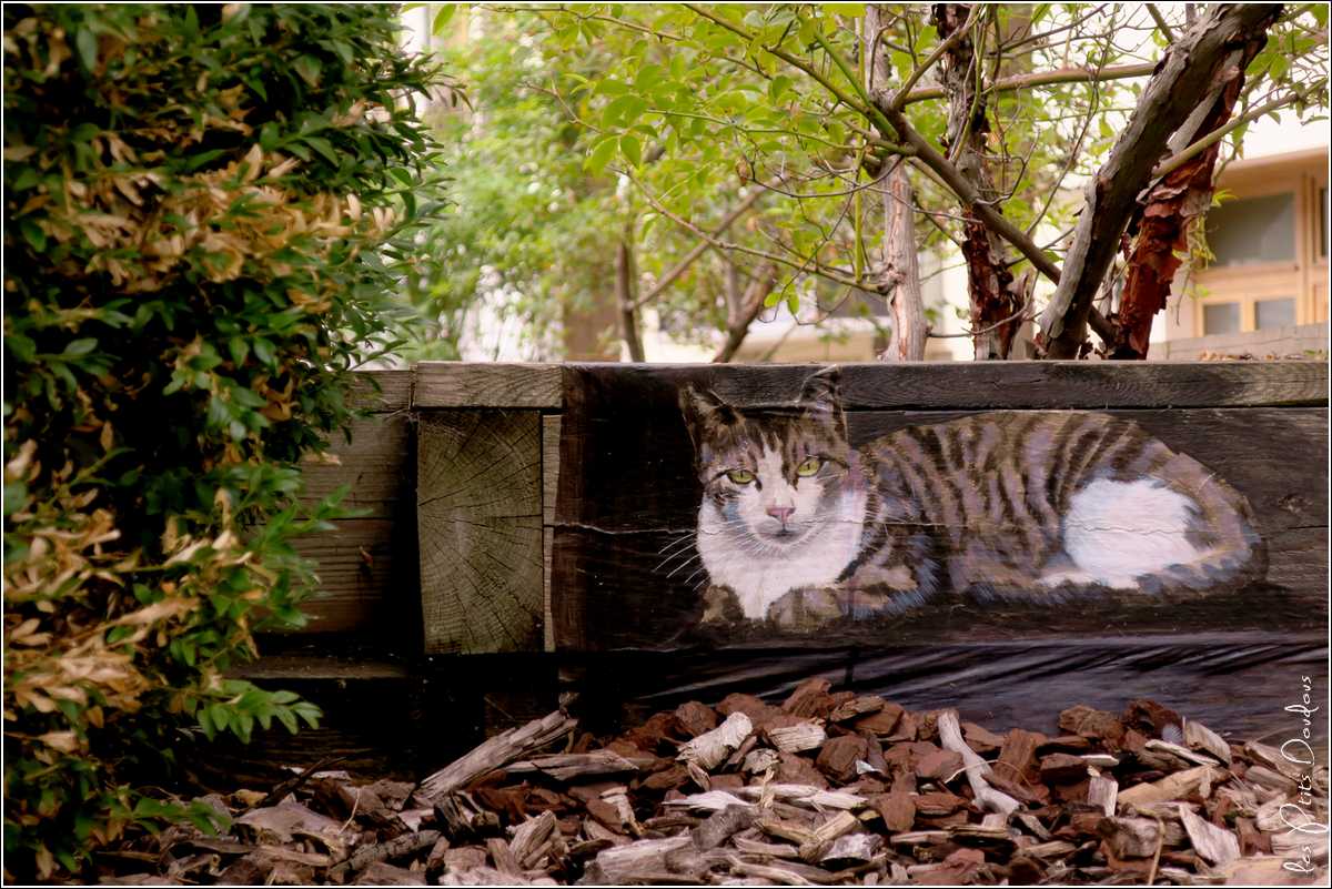 Ainsi place Saint-Rémy et dans les rues Pithou, Gambey et Passerat des chats peints en trompe-l’œil [3] sur les murs et les portes "surveillent" les passant pour le plus grand bonheur des enfants qui partent à leur recherche...