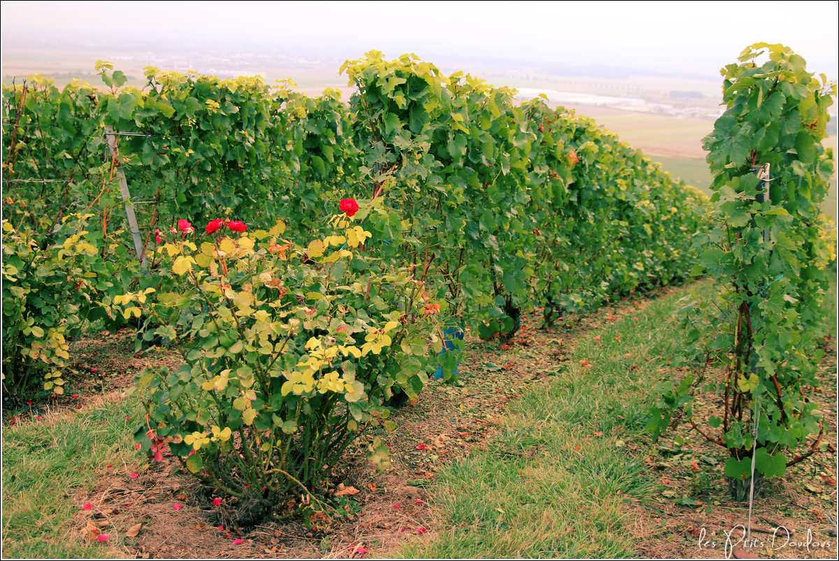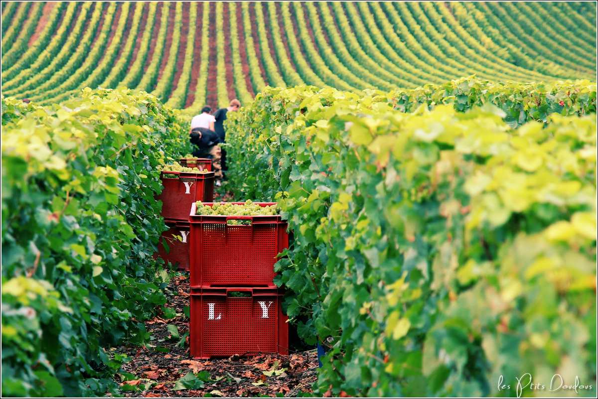Sur la colline "appellation Champagne", pas très loin du Jardin des P’tits Doudous, chacun s’active car après les pluies des jours précédents il ne faut pas laisser les grains s’abimer.