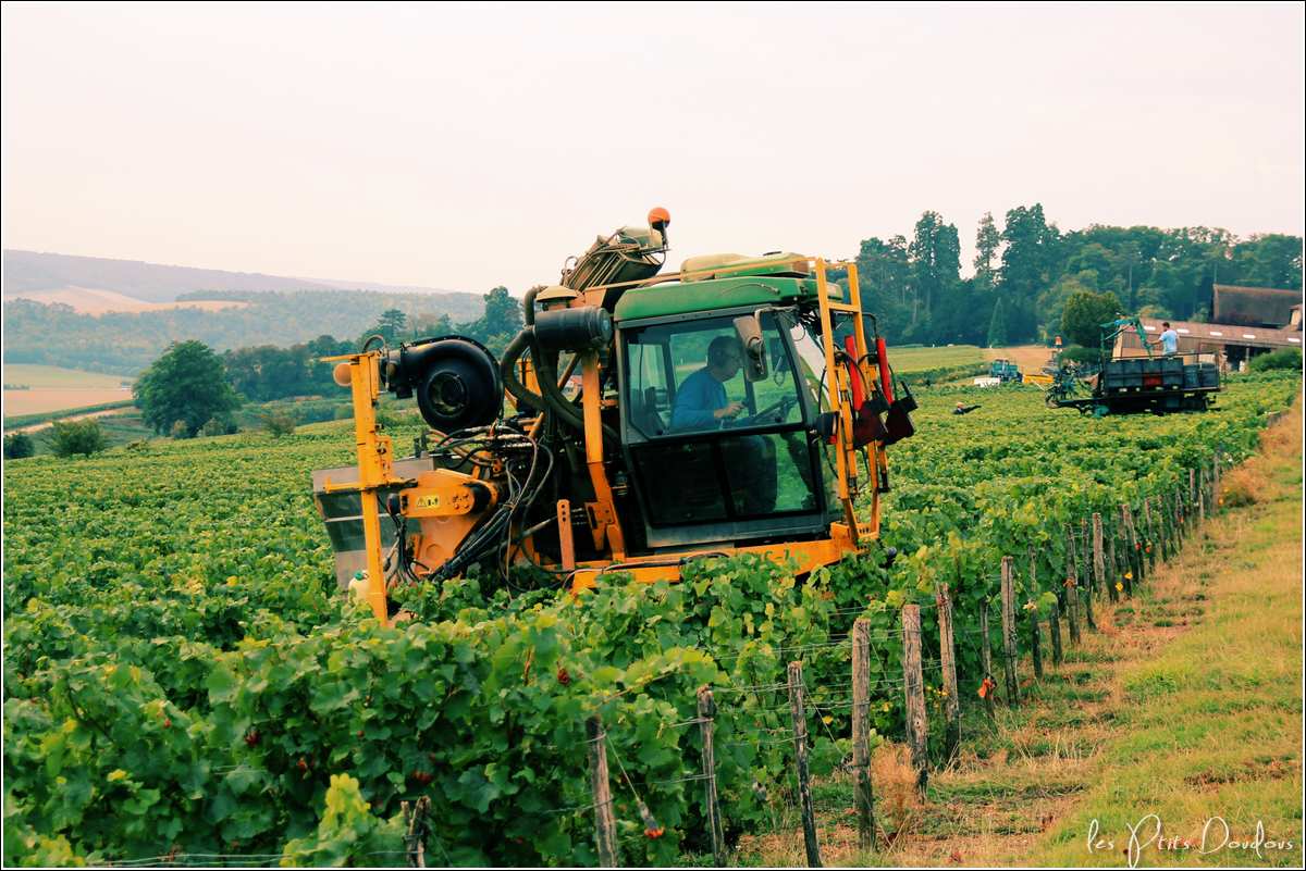 Quelques enjambeurs sont là pour transporter les caisses remplies de grappes de raisin en bout de rayon avant de les transporter jusqu’au pressoir...