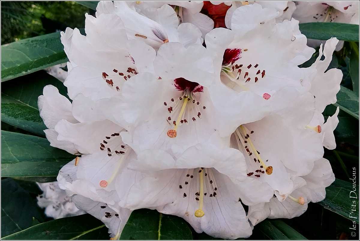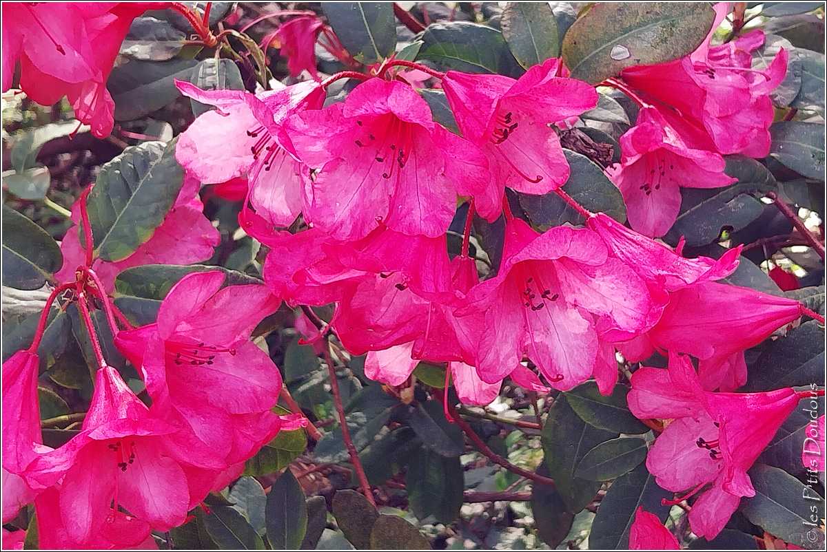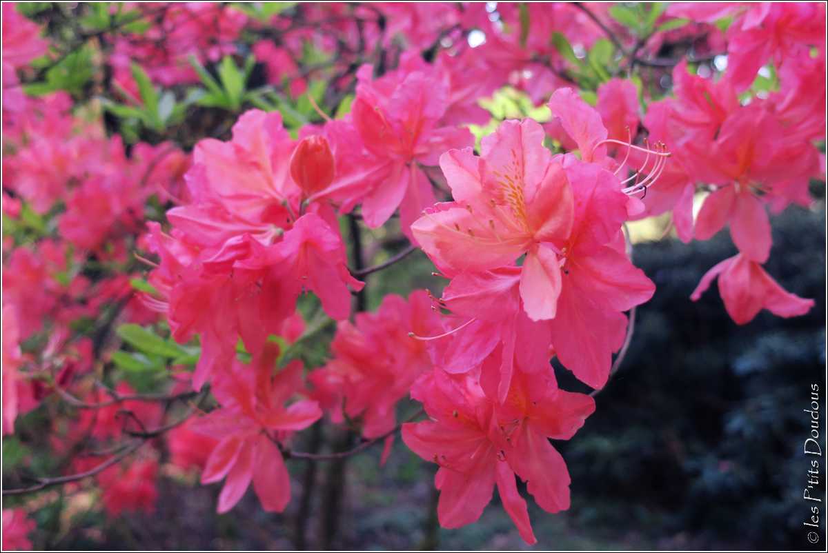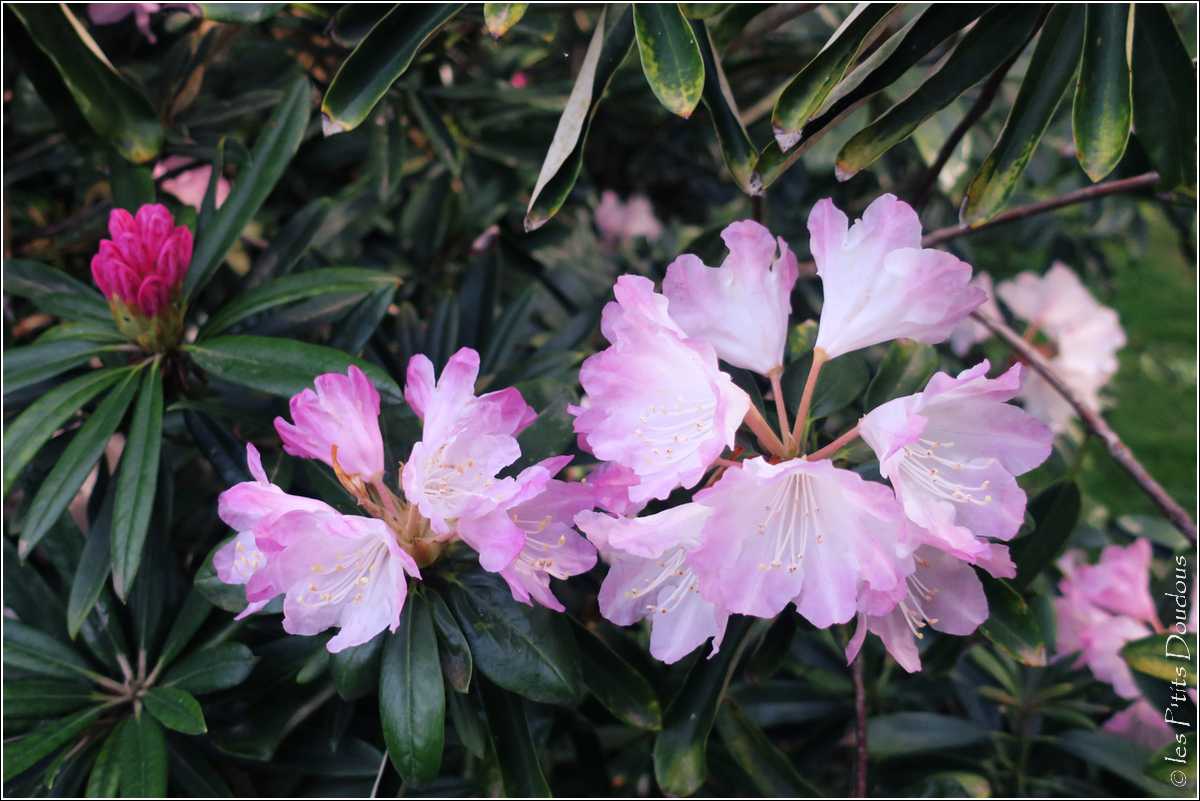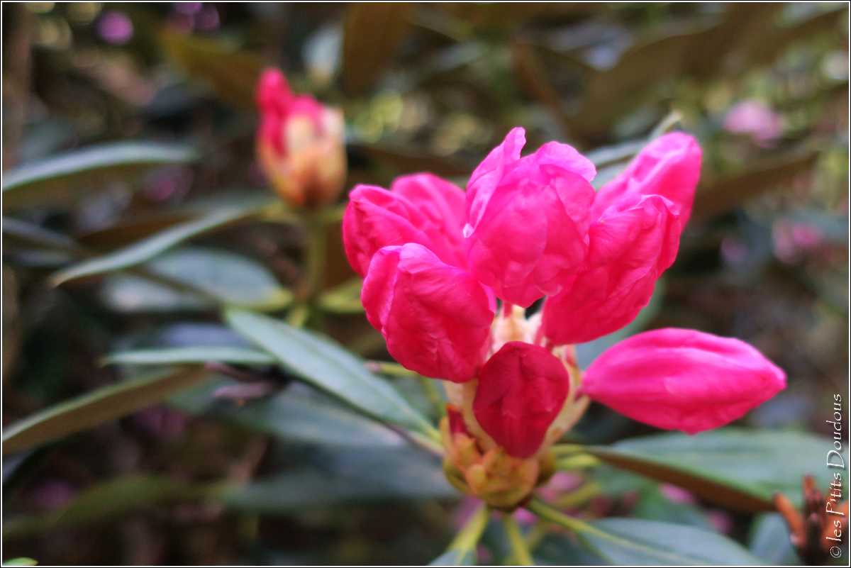 Profitons en pour aller admirer les rhododendrons qui sont également en fleur en passant à proximité de la mare où s’ébroue toute une petite famille de canetons (11).