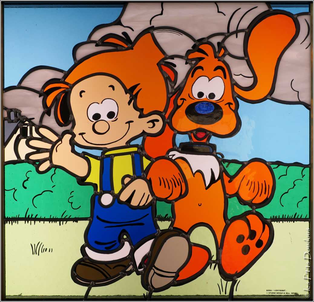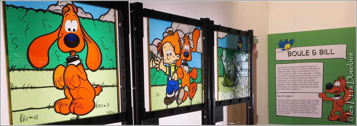 Reprenant les aventures de la bande dessinée franco-belge, les vitraillistes Stéphanie et Gori Loire et Hervé Loire ont retranscrit les aventures de Gaston Lagaffe, Boulle & Bill, Lucky Luke, Spirou et Fantasio ou encore Blake et Mortimer en vitraux, pour le bonheur des petits et des grands...