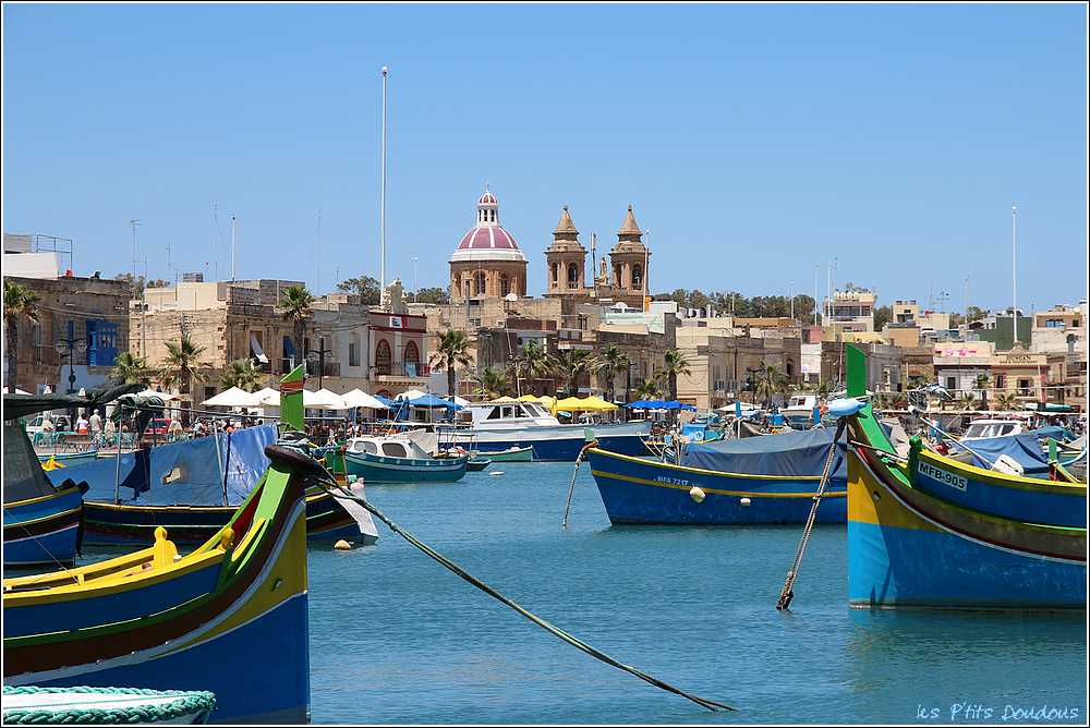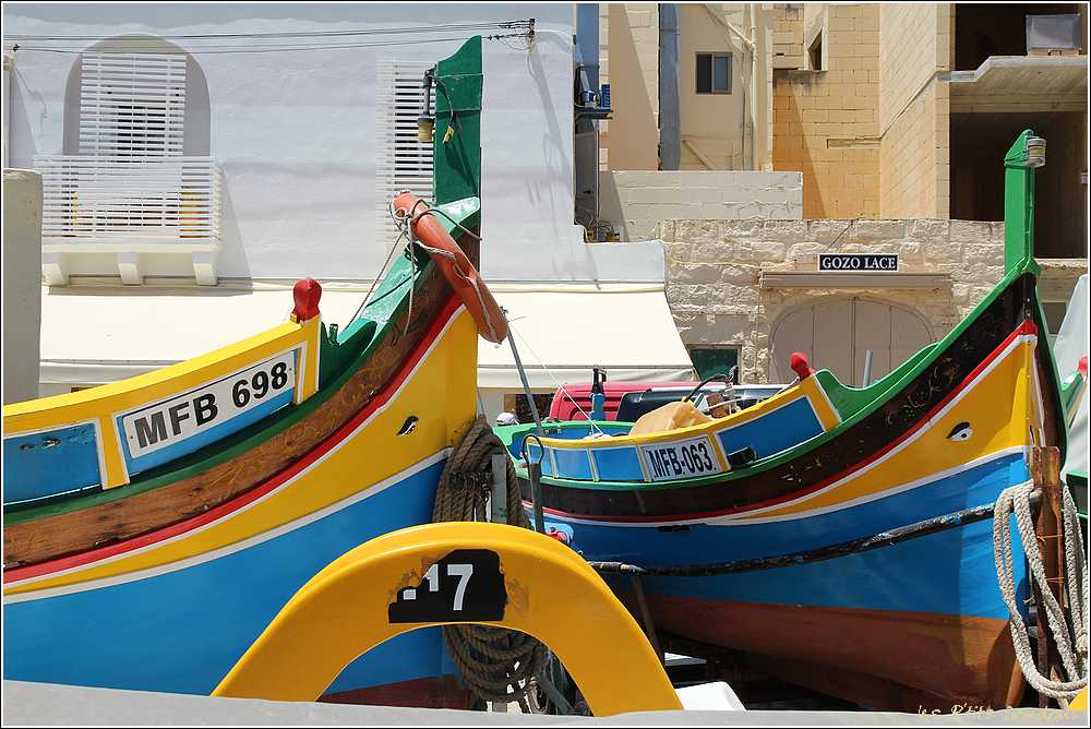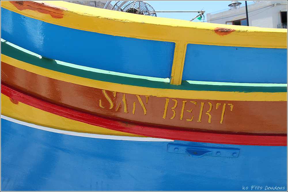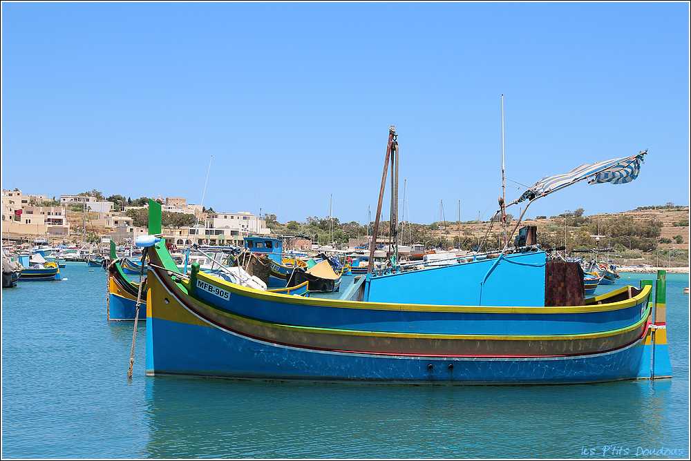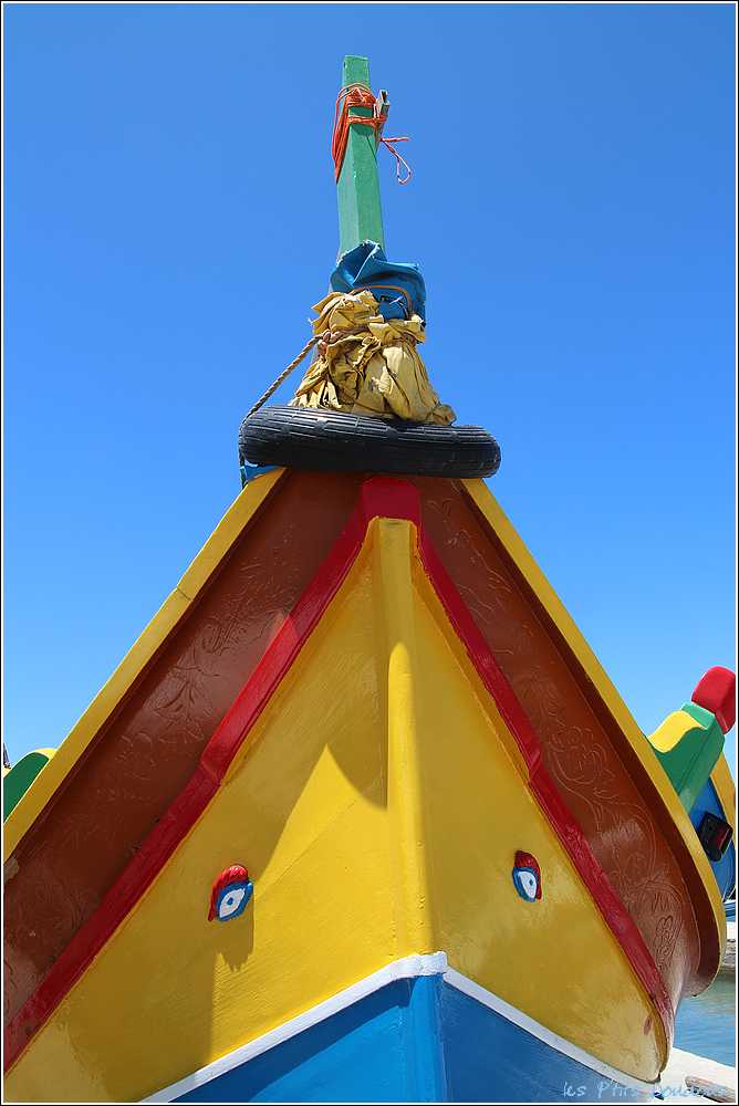 VoyagesPhotosMalteTradition qui remonte à l’époque phénicienne destinée à écarter le mauvais sort, un œil grand ouvert orne l’avant de chaque luzzu et des dghasjsa, ces bateaux de pêche jaunes, rouges, bleus et verts qui naviguent le long des côtes de Malte.