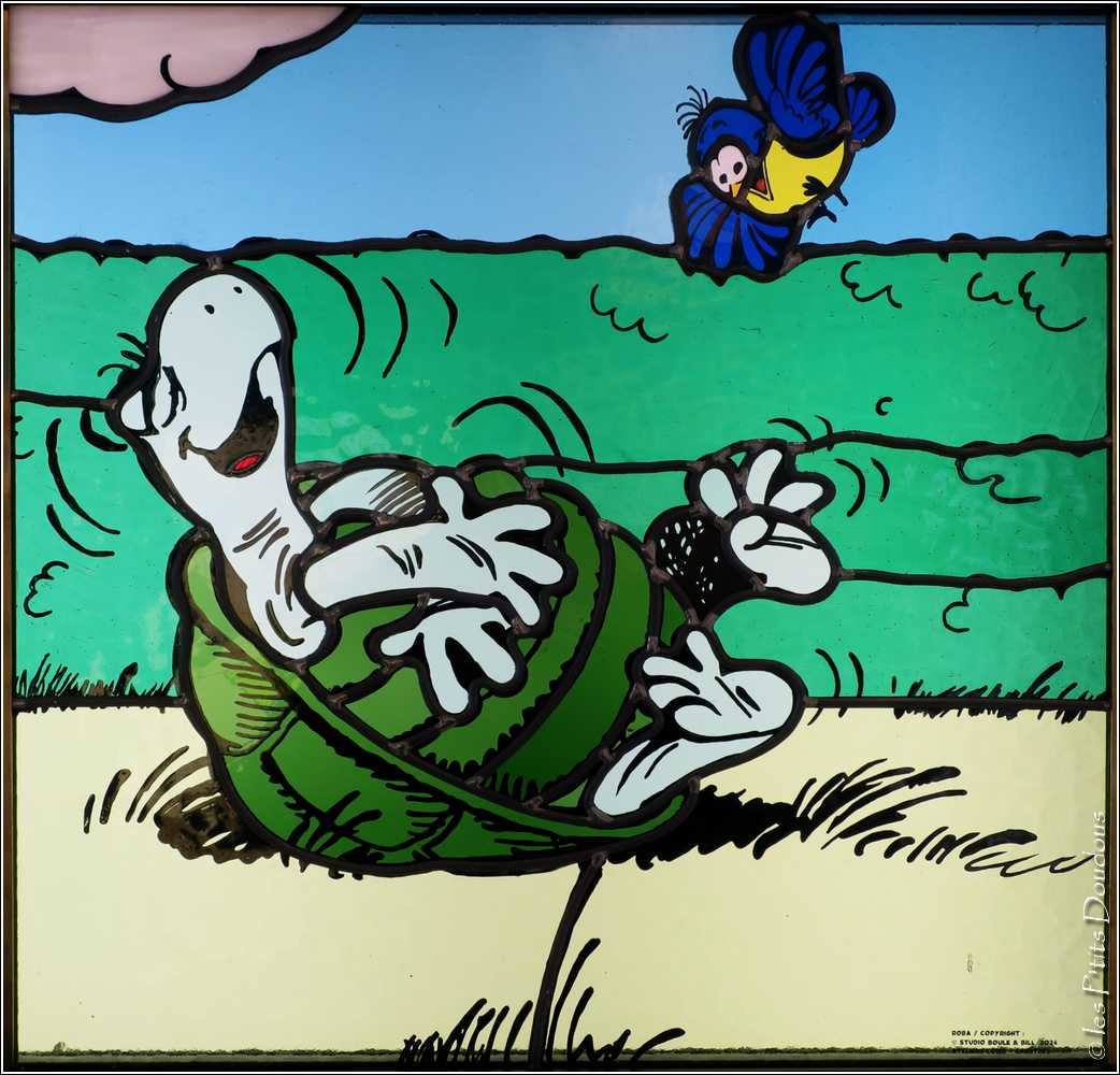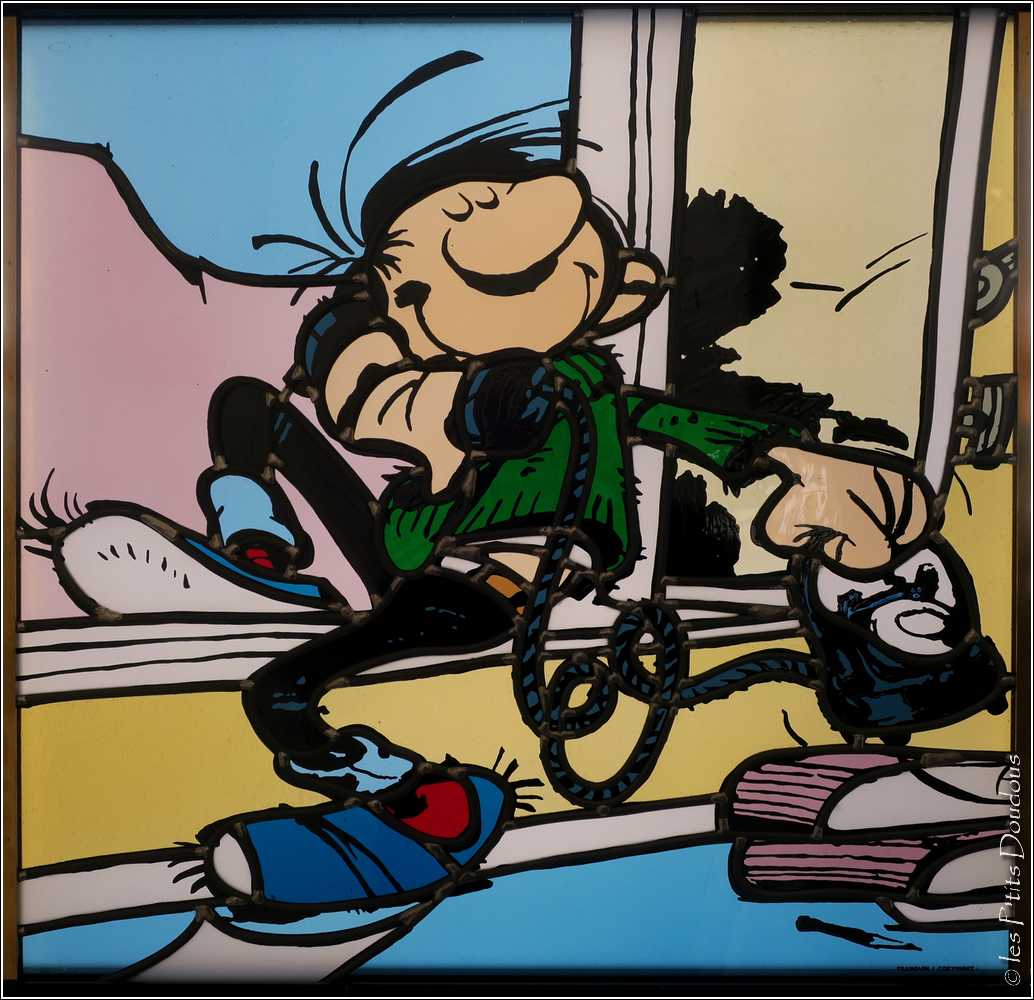 Reprenant les aventures de la bande dessinée franco-belge, les vitraillistes Stéphanie et Gori Loire et Hervé Loire ont retranscrit les aventures de Gaston Lagaffe, Boulle & Bill, Lucky Luke, Spirou et Fantasio ou encore Blake et Mortimer en vitraux, pour le bonheur des petits et des grands...